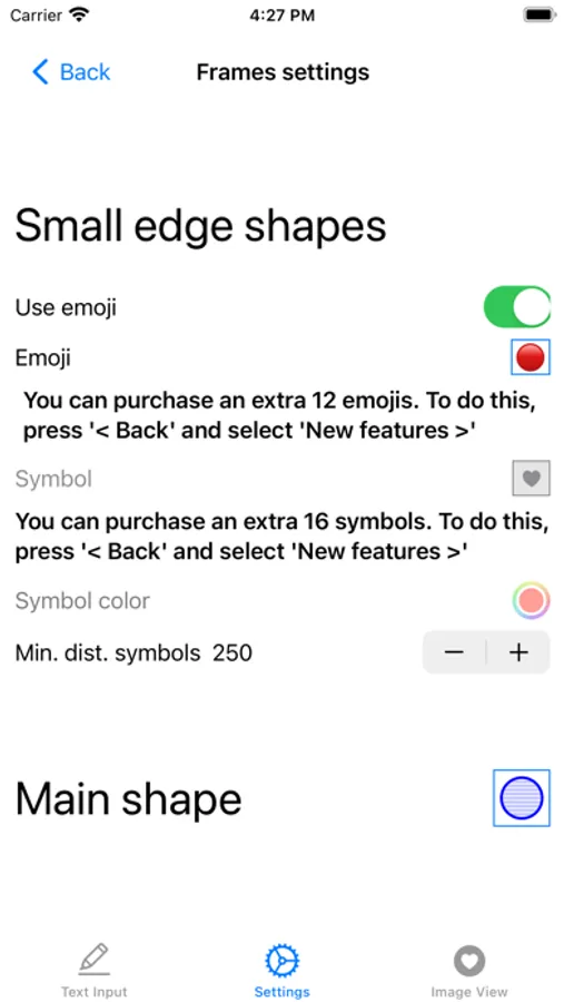 - Choose margin distance and/or distance between text and frame symbols/emojis
