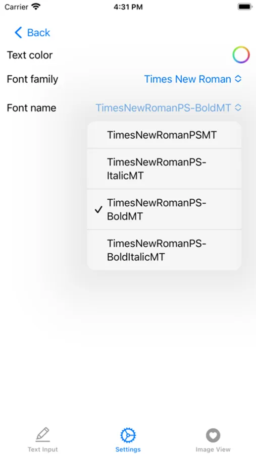 - Choice between lots of fonts, including bold, italic or both dependings on what is available for font.
