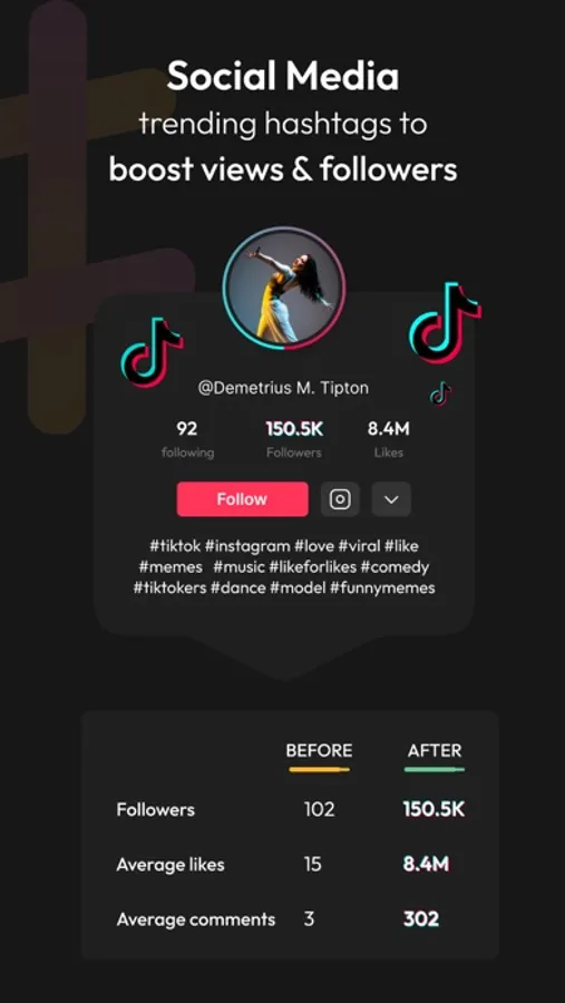 Hashtag Manager for Social is a hashtag generator app for expert Instagram, Tiktok, Youtube, Twitter and all other social media users. You just need to enter your base hashtag then it will find the viral hashtags on our hashtag database for you to get more likes and followers. It also has tons of preset popular hashtags that we chose for all experts. Our database has millions of hashtags to show you the most popular and trending hashtag groups every day. Our app can be used for TikTok, Instagram, Twitter, youtube and all other social media platform.