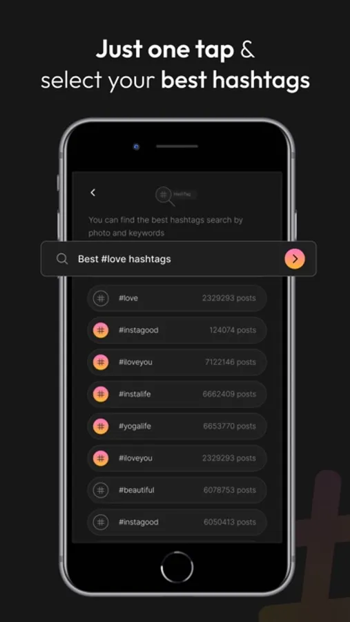• Find hashtags for likes – attract motivated users to interact with your content.