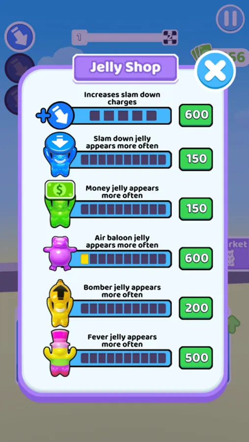 Squishy and bouncer jellies are running away! Use jellies to jump and bounce forward and smash'em all.Some of them are have their special character which are going to surprise you! Use your smash power to get down and hit jellies from the head. There are going to be lots of juicy smashed jellies around!
