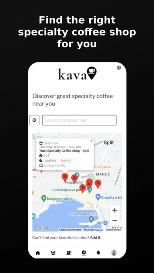 Explore our curated map of specialty coffee shops. See how other Kava users have rated their coffees and check what beverage the café is top-rated for. Need to do some work? Find specialty coffee shops that are laptop friendly. Hungry? See what food is on offer. Need some fresh air? Find cafés that have outside space.