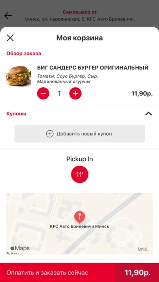 Не пропускай акции и скидки. Выбирай купон и вводи его номер в киоске самообслуживания, называй на кассе в KFC или используй в приложении для самовывоза. Заказ онлайн Теперь не нужно ждать заказ. Оформи его по дороге в ресторан и оплати онлайн в нашем приложении. Мы все приготовим к твоему приходу: тебе останется только подойти к кассе и забрать заказ.