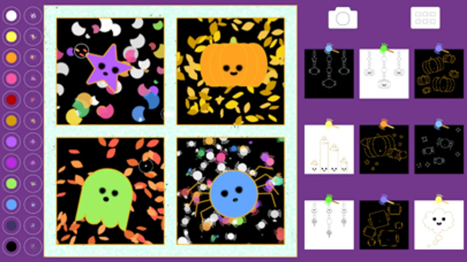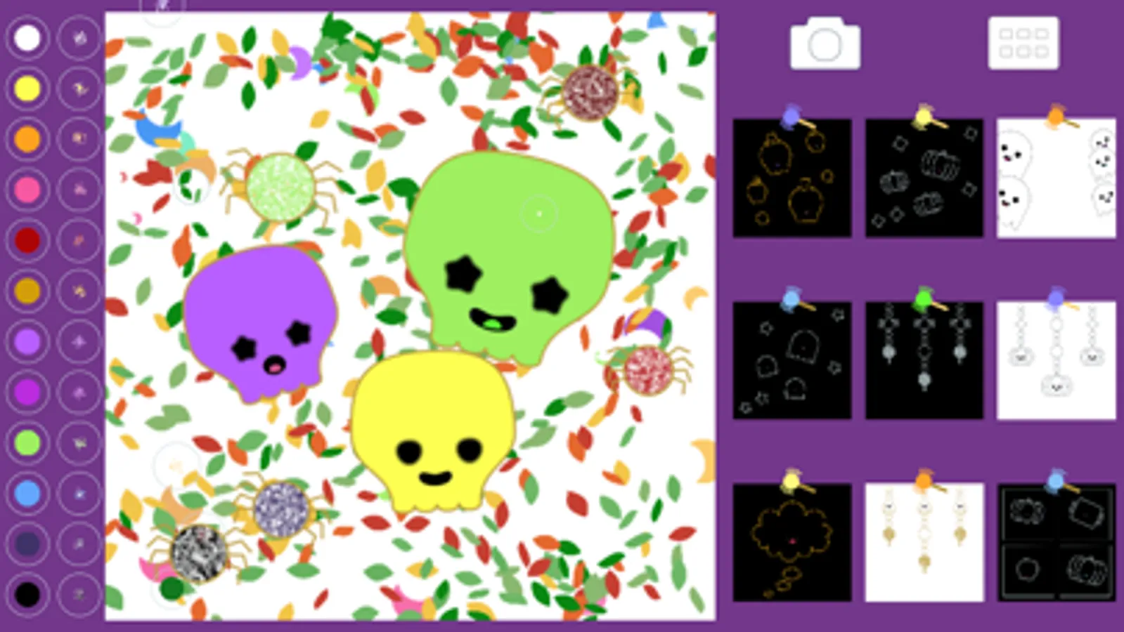 You can coloring endless pictures of ghosts, candles, pumpkins, spiders, skulls, candys...