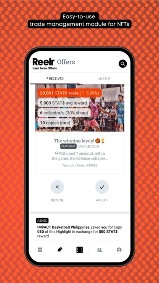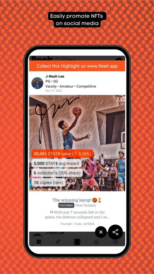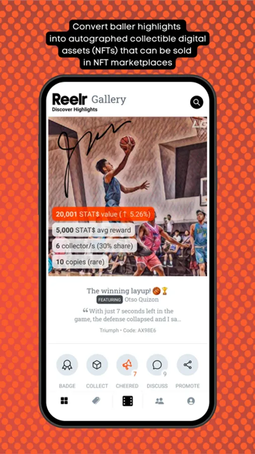 Turn your highlights into digital assets that can be collected and rewarded with cash, tokens, merch or activities!