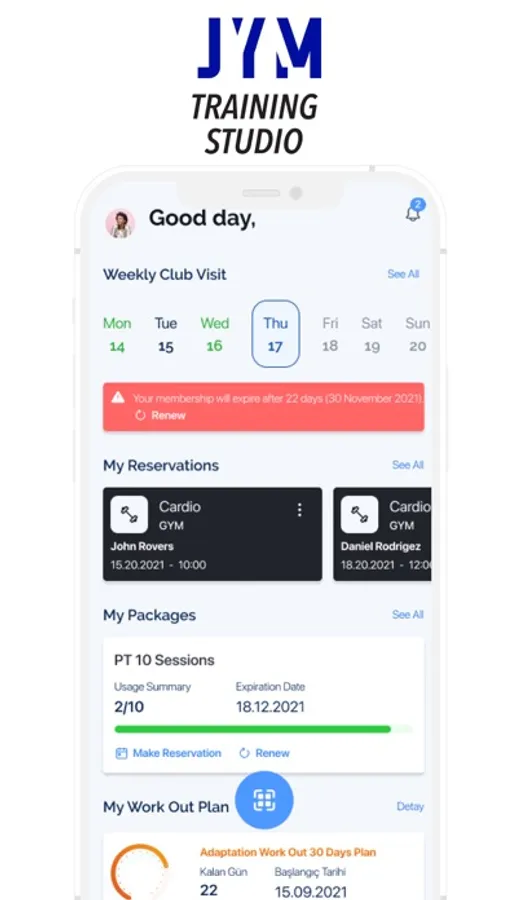 Jym Training Studio üyeliğinizi yönetmek için kullanılan bir IOS uygulamasıdır. Müsteri Programları, Ölçümleri, Rezervasyon Alma, Hizmet Satın Alma, Stüdyo Ders İşlemlerini gerçekleştirebilen Senkron Yazılım tarafından üretilmiş bir IOS uygulamasıdır.