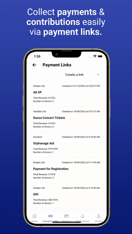 • Create payments links to collect all forms of payment (contributions, donations, tickets, subscriptions, fees, crowdfunding, etc)