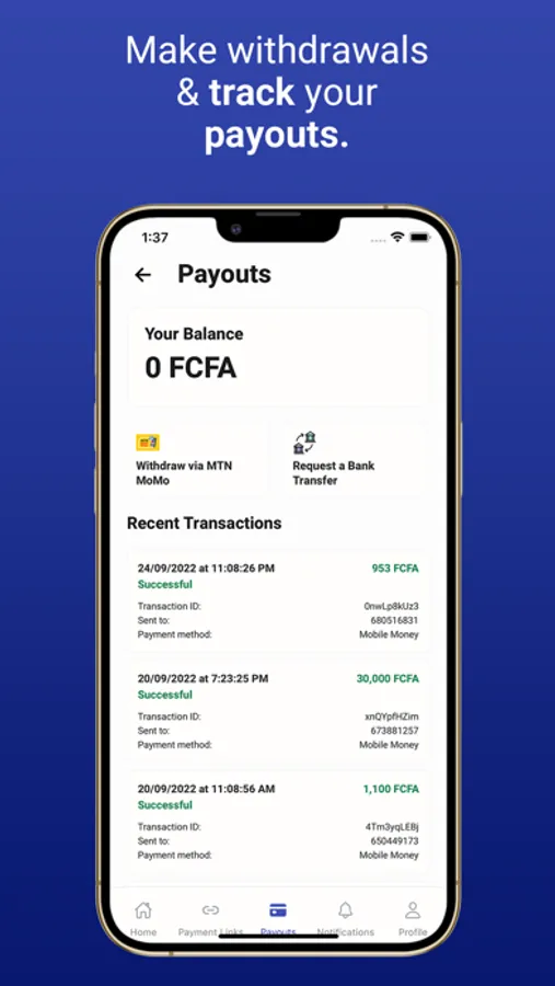 With the Fapshi mobile app, you can securely log in to your Fapshi account and manage your funds on the go.
