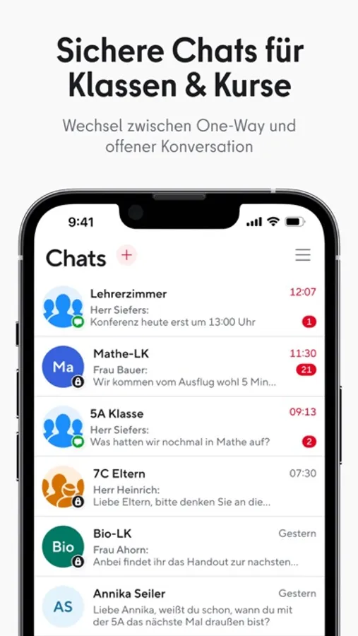 Hinzu kommt: Familien mit Kindern an unterschiedlichen Schulen können mit Hilfe der App bequem zwischen den Standorten im Menü des Messengers wechseln.