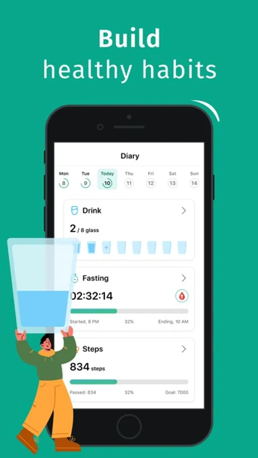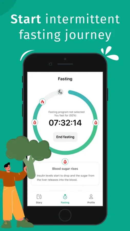 Set your fasting goal and observe your progress. Receive notifications about the start and finish of the fasting period every day.