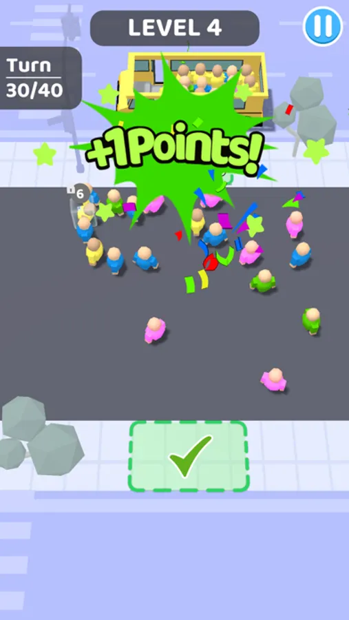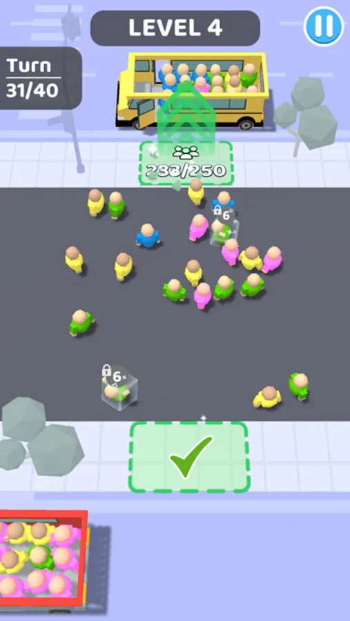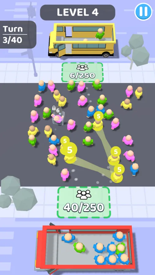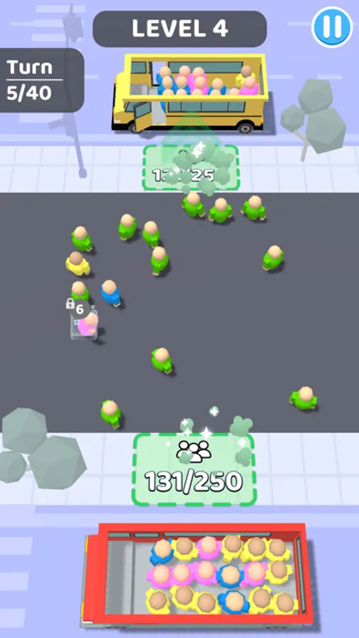 Match the same colored people, create combo chains and fill the busses in minimum turn count!