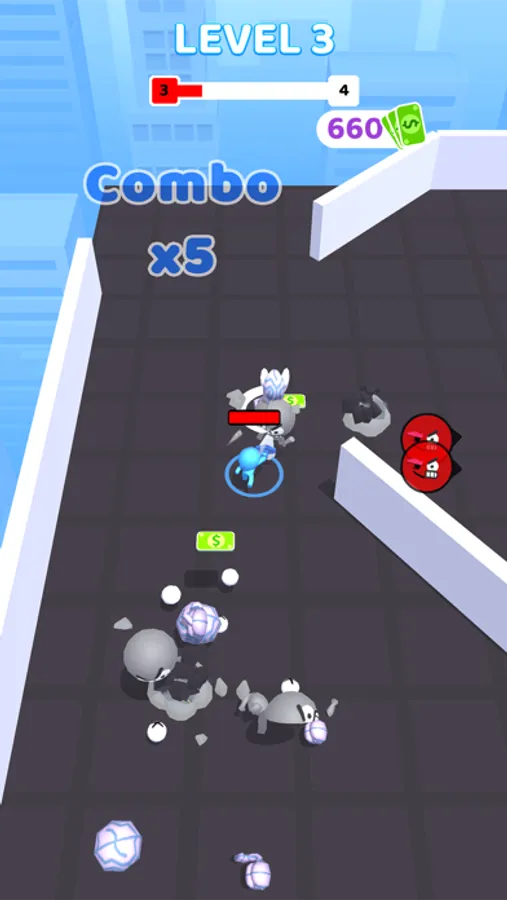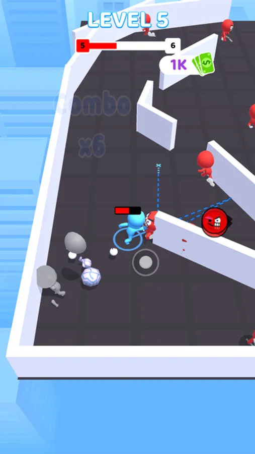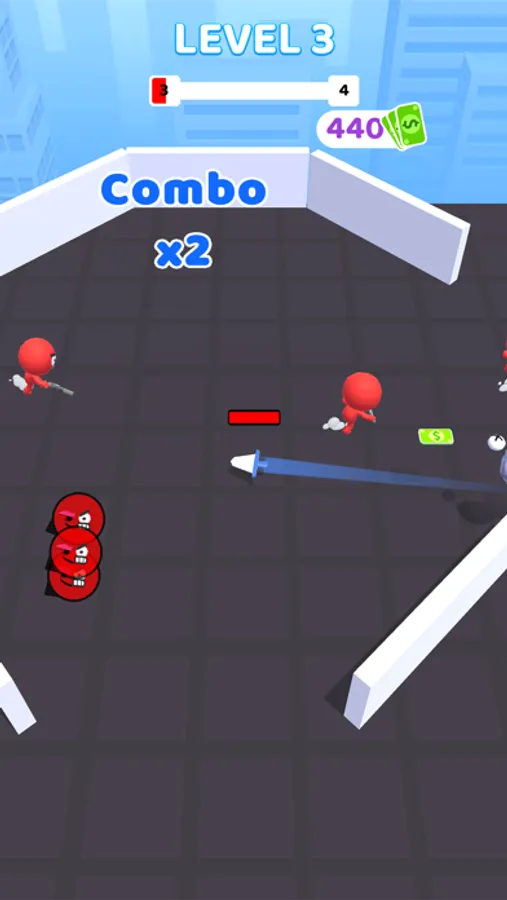 Teleport and slice! Aim to richohet from the walls and maximize your kills. How many combos can you make?