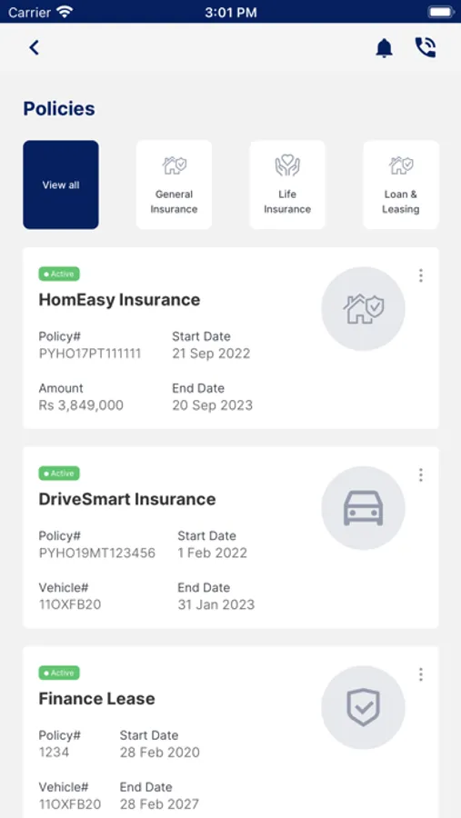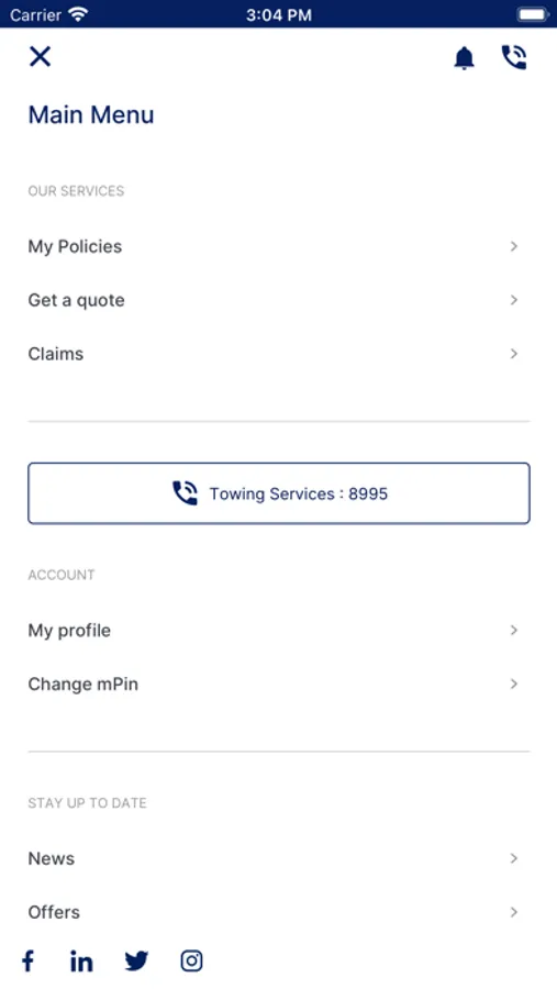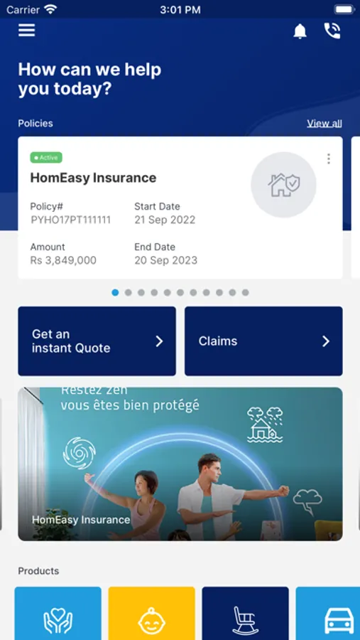 Submit Claim Notifications for Car, Home and Medical with the possibility of uploading documents, pictures and even a voice note