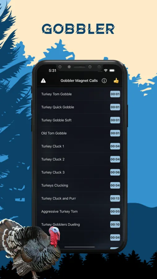 One of the most important tools for a successful hunt are great turkey sounds. With this app you can be a turkey hunting calls pro!