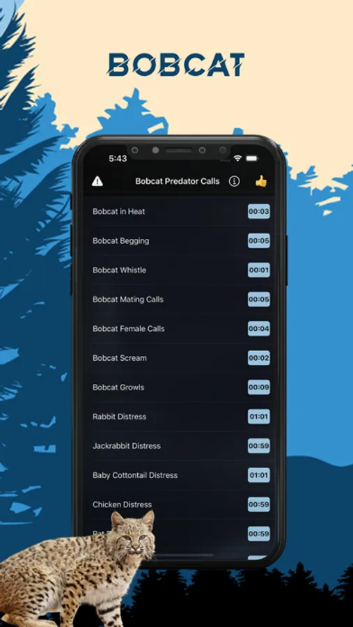 One of the most important tools for a successful hunt are great bobcat sounds. With this app you can be a predator hunting pro!