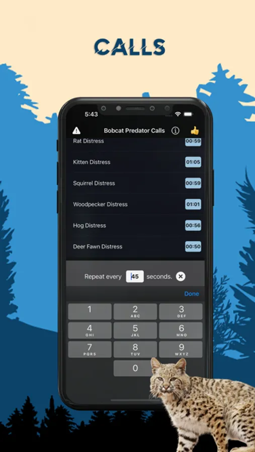 No longer do you need drag along bulky electronic callers to your favorite hunting spot to be a predator pro. With this bobcat hunting calls app you can simply select from many different predator sounds to attract mountain into your shooting lanes.