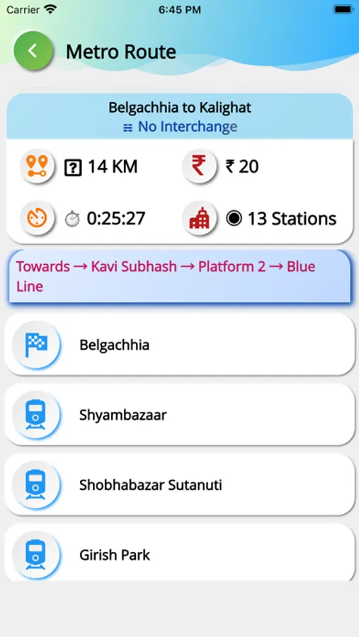 Features on Kolkata Transport app: Kolkata Local Train, Metro Bus include: