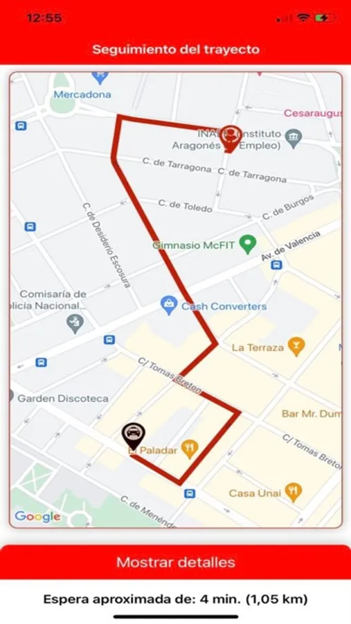 Una vez indicado su número de teléfono y activada la localización que proporciona su dispositivo, podrá cómodamente solicitar un vehículo. Siempre se le indica el taxi más cercano y una vez solicitada la reserva, podrá conocer número de licencia, vehículo y nombre del conductor. Además puede ver la distancia a la que se encuentra su taxi hasta que le recoge en el lugar indicado.