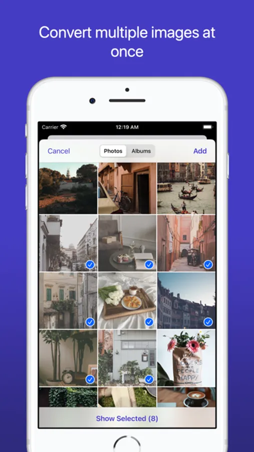 - Easily select multiple images from your photo library and convert them to any of the supported target formats (JPG, PNG, HEIC).*