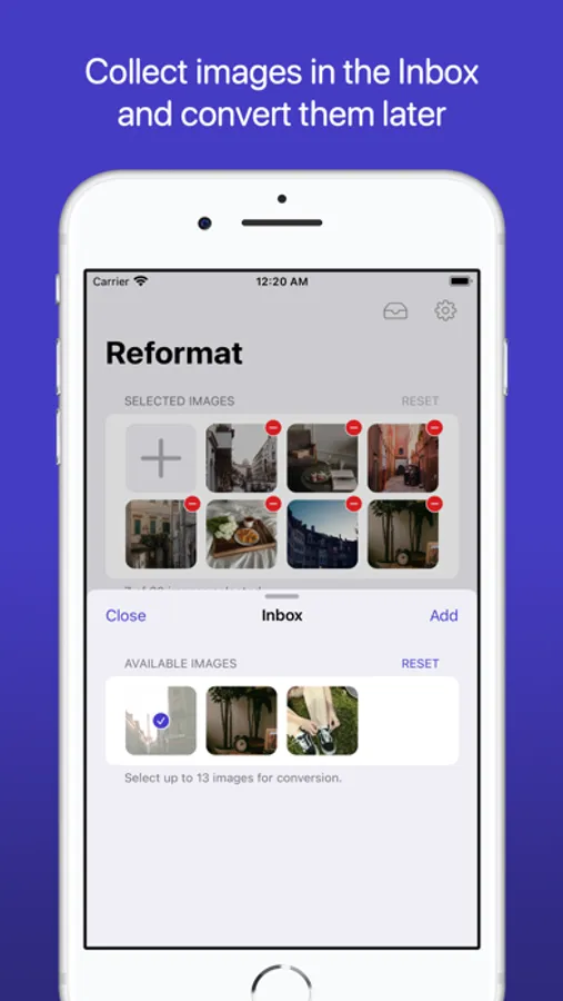 - Share images from any app to the Inbox via the action extension and convert images later once you are ready.*