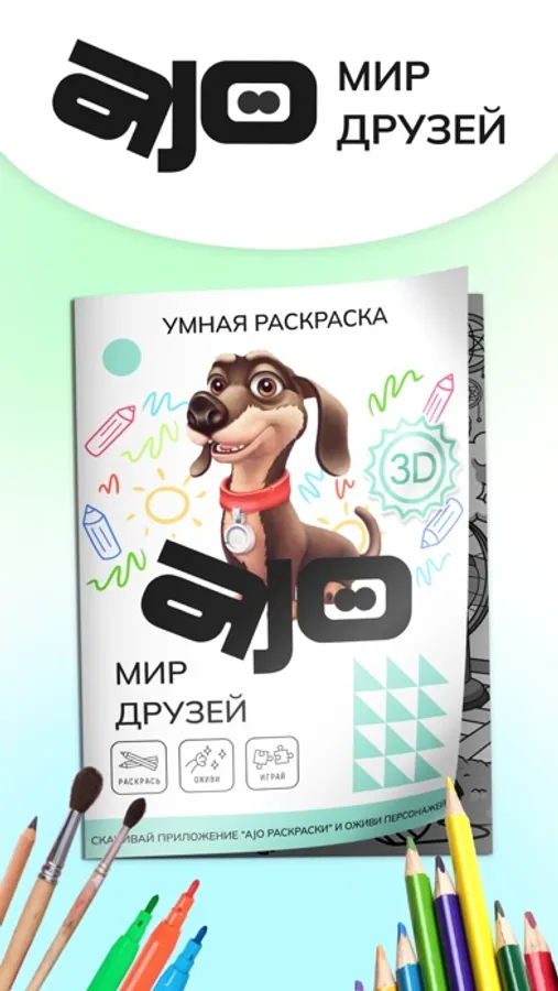 Раскрась и оживи. Умная раскраска AJO. Раскрашивай любимых питомцев и оживляй их в виртуальной реальности при помощи камеры своего смартфона.