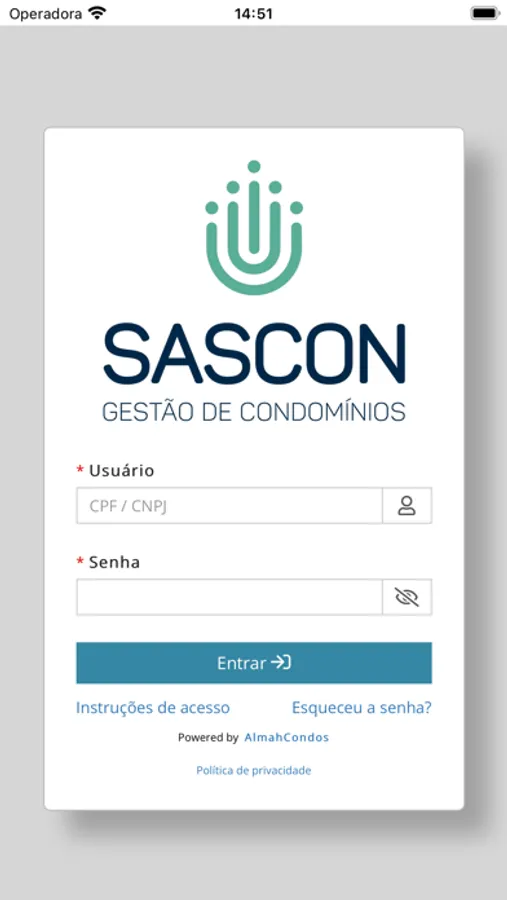 Este aplicativo é exclusivo para usuários da Sascon Condomínios.