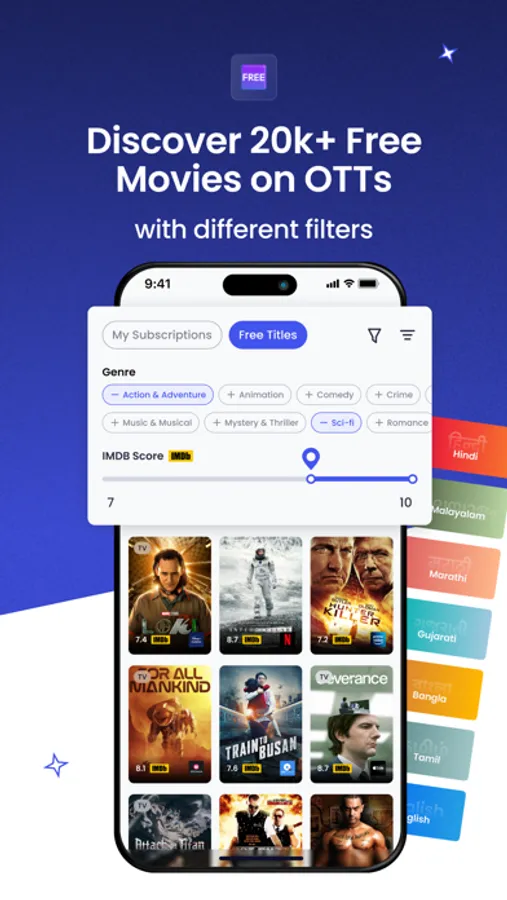You can skip paying for entertainment. A lot of titles are available for free on some OTT that you may not be aware of. Wall allows you to find free movies on popular streaming platforms like Netflix, Amazon Prime Video, SonyLIV, Disney+ Hotstar, Voot, and Zee5. Find free Web Series and free TV Shows on OTT Apps like Docubay, Discovery+, Lionsgate Play, Shemaroo