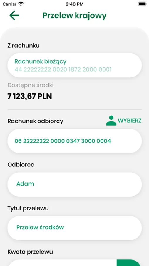 - wykonywanie przelewów krajowych, własnych i doładowań telefonów,