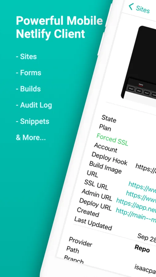 Dashify is a powerful Netlify Client that gives you the power to manage your Netlify site from the palm of your hand!