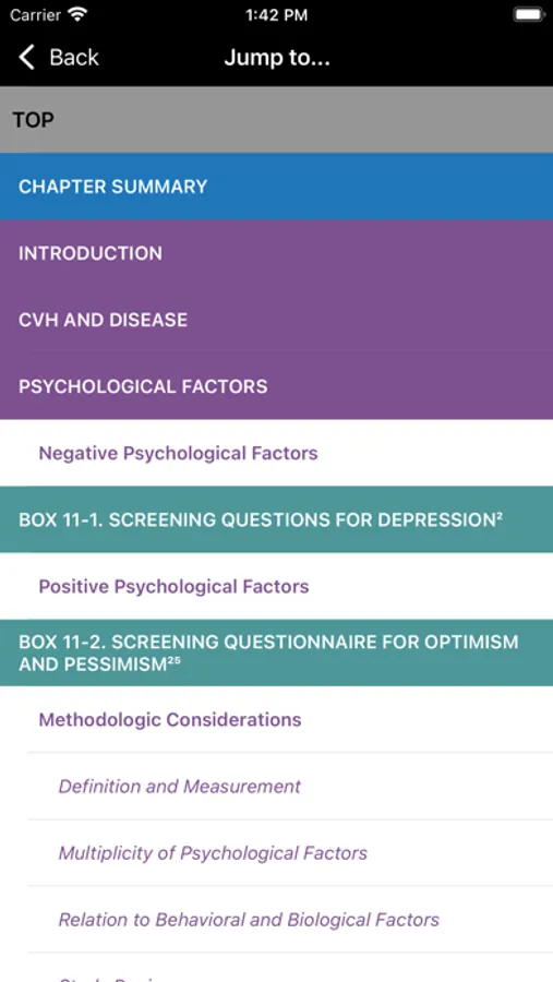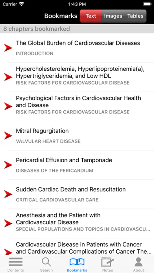 This app is very intuitive and easy to navigate, allowing you to browse the contents or search for topics. The powerful search tool gives you word suggestions that appear in the text as you type, so it is lightning fast and helps with spelling those long medical terms. The search tool also keeps a recent history of past search terms so you can go back to a previous search result very easily. You have the ability to create notes and bookmarks separately for text, images and tables to enhance your learning. You can also change the text size for easier reading.