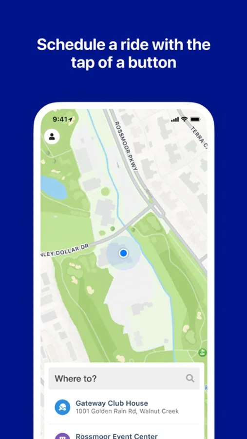 The Rossmoor OnDemand App is only for residents of Rossmoor Walnut Creek. This App will allow you to book busses directly from your smartphone.