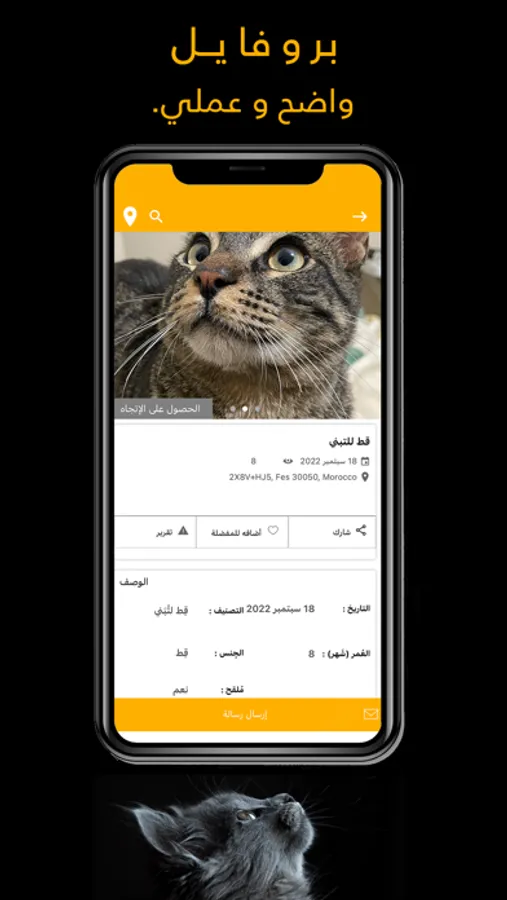 - إذا قدر الله و فقدت قطك يمكنك نشر صوره في التطبيق, حيث يمكن لأي شخص وجده أن يتواصل معك.