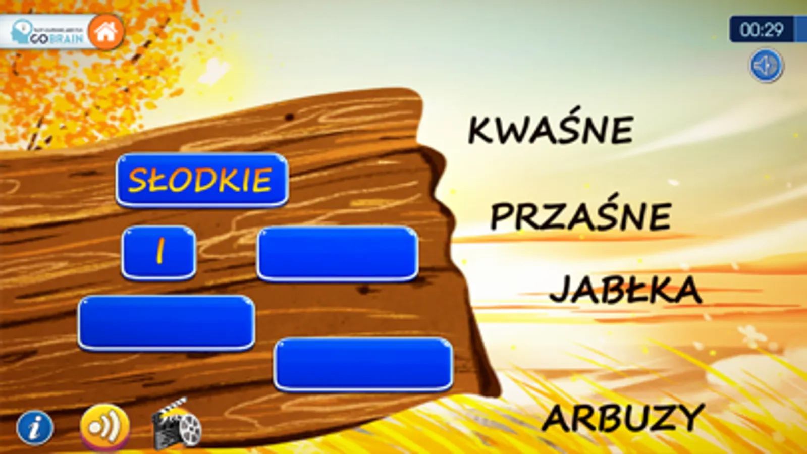 Należy dostosować poziom głośności do preferencji dziecka, w początkowej fazie ćwiczeń można dźwięki w tle wyciszyć przytrzymując ikonę z głośnikiem przez 1,5 sekundy. Funkcja ta automatycznie sama włączy się przy kolejnym zadaniu. Wyciszanie stosować w wyjątkowych przypadkach, ponieważ ta funkcja jest szczególnie wskazana u dzieci z nadwrażliwością słuchową, dzięki niej dziecko w miarę treningu uczy się ignorować dźwięki w tle a wrażliwość słuchowa normalizuje się.