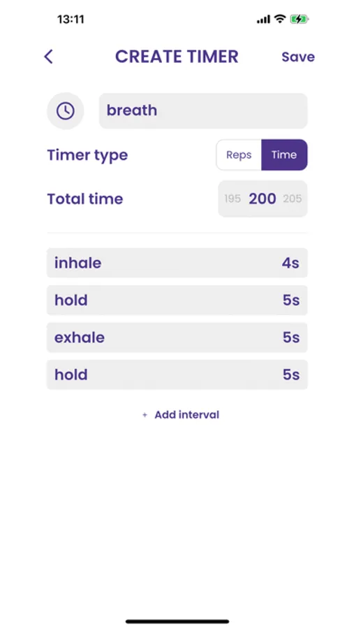 Create custom timers with named intervals to make it easier to follow tempo workouts and breathing exercises.
