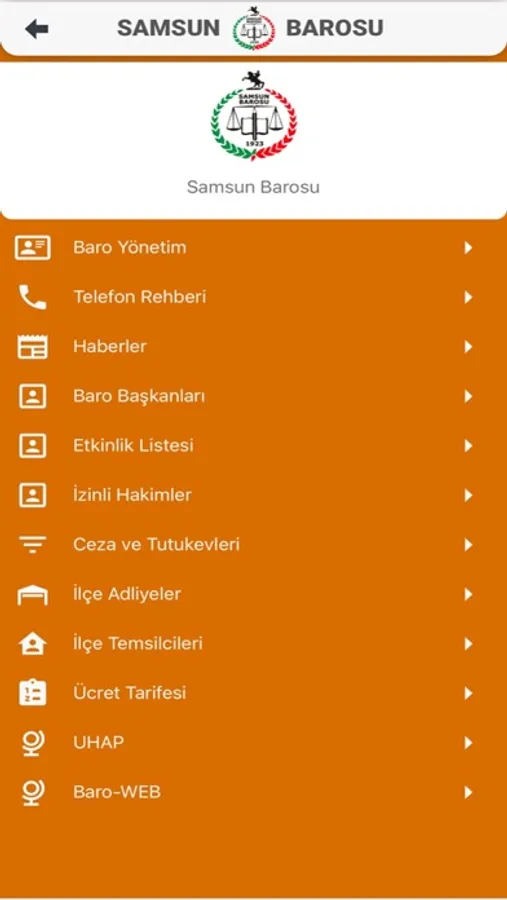 Samsun Barosuna Ait Mobil Uygulama. Baro hakkında güncel bilgiler ve Baroya ait duruşma takip sistemi ile entegredir.
