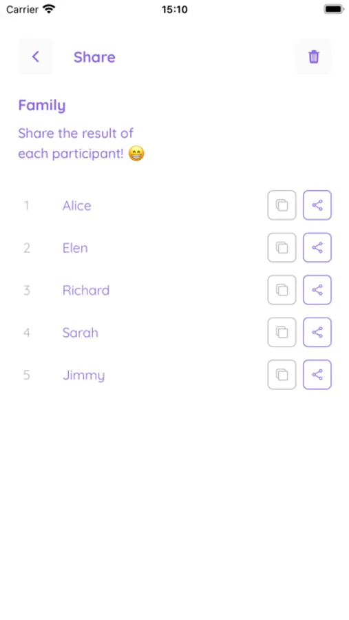 - Click the share button to send the code to the participant to find out who the secret santa is.