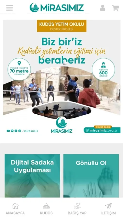 Mirasımız Derneği, Kudüs,Mescid-i Aksâ ve Osmanlı Devleti’nin bölgeye vakfettiği tarihi ve kültürel mirası korumak ve bu mirasın önemi konusunda halkımızı bilinçlendirmek amacıyla 2008 yılında kurulmuştur.