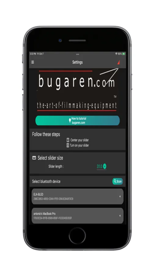 With this app, you can pair to your Bugaren Camera Slider and change your SPEED, the length of travel, acceleration and deceleration on the fly.