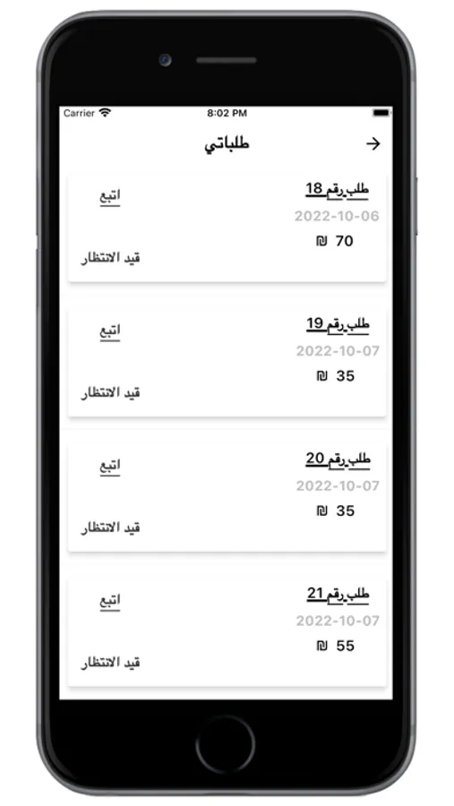 يمكن للمستخدم عرض جميع طلباته الحالية وتتبع حالة طلب واحد او رويه تفاصيل ومحتويات الطلب.