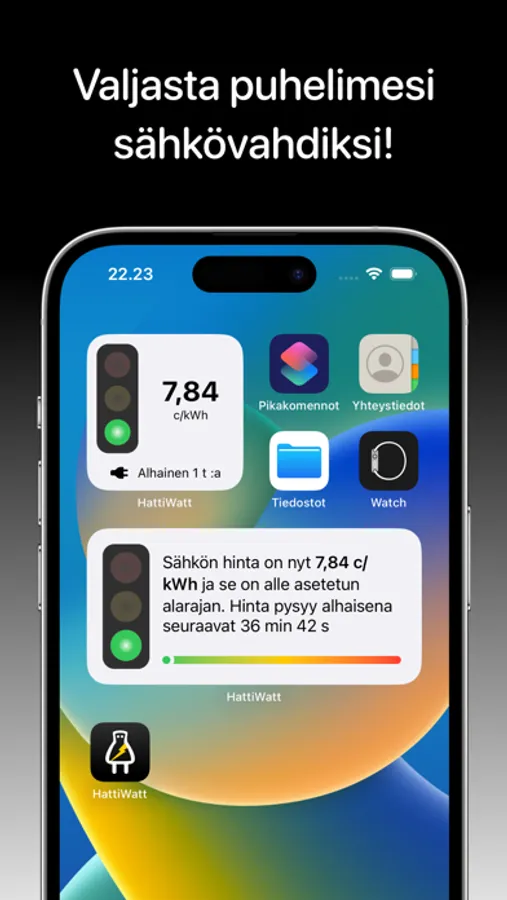 HattiWatt kertoo yhdellä vilkaisulla mikä on sähkön hinta juuri nyt. Teemme sähkön käyttämisestä hauskaa ja helppoa, jossa koko perhe voi olla mukana. Tiedät aina, koska kannattaa pestä pyykkiä, lämmittää kotia tai ladata akkuja. Jokainen vilkaisu säästää rahaa!