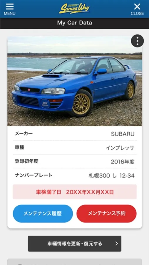 一度店舗へご来店いただきお車の登録がある場合、アプリに必要情報を入力していただくと、ご自身のお車の車検時期などがアプリ上でご確認いただけます!