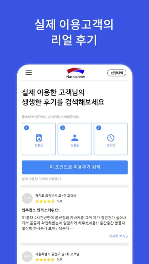 만족도 높은 나노클린 전문가의 프리미엄서비스를 합리적인 가격에 만나보세요.