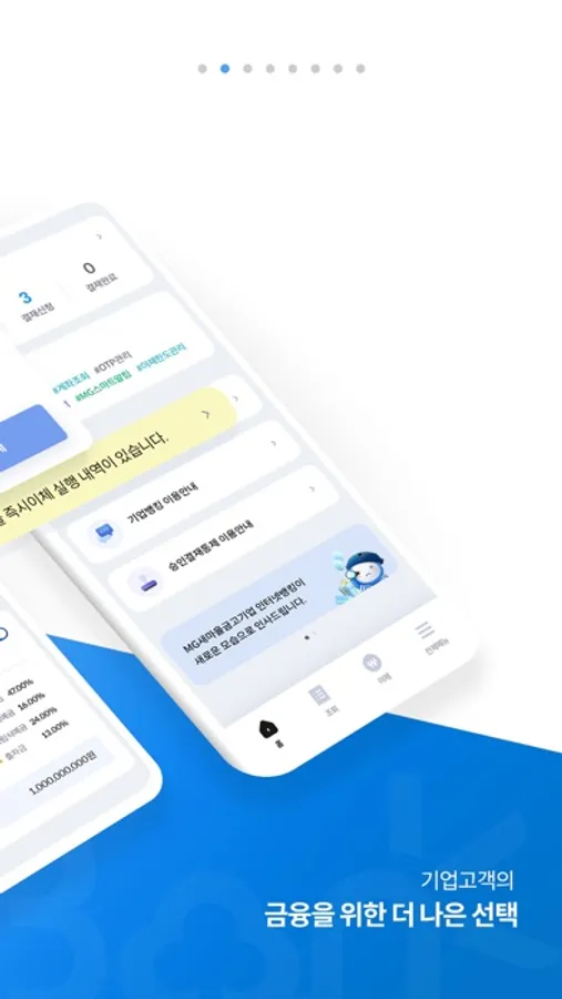 MG새마을금고가 ‘MG더뱅킹기업’으로 사업자 고객님의 기UP을 응원합니다. 개인사업자, 법인, 임의단체 등 사업자 고객님이시라면 MG더뱅킹기업과 함께하세요! (개인 고객님은 ‘MG더뱅킹’을 이용하시기 바랍니다.)