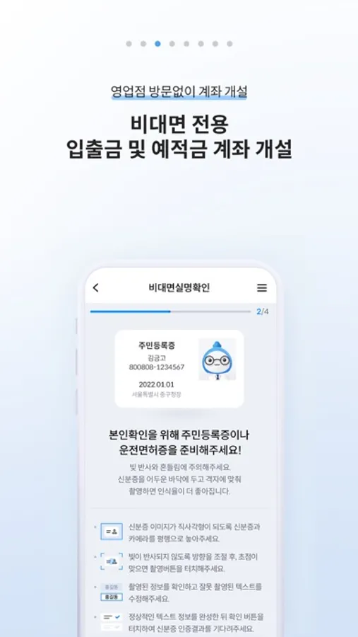 - 비대면 계좌 개설 : 개인사업자 고객 대상으로 비대면 전용 예적금 개설 기능 제공