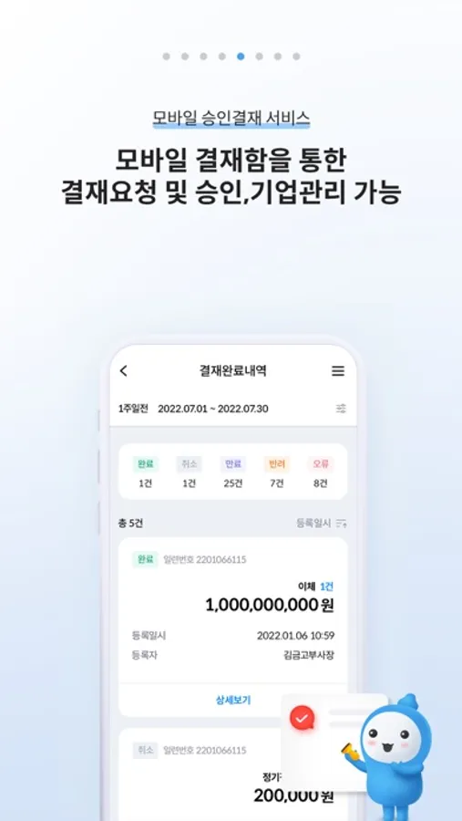 - 승인결재 : 다단계결재 이용 고객 대상으로 모바일 결재함 기능 제공