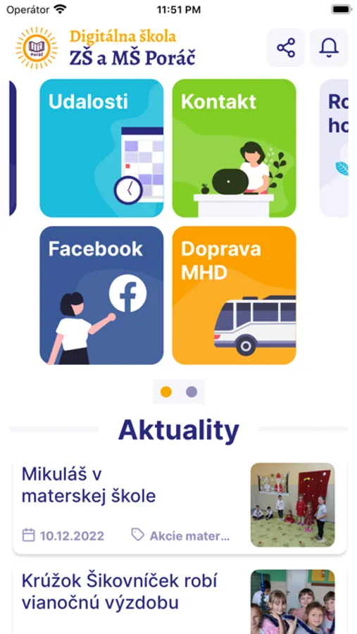 Na jednom mieste aktuality, udalosti, informácie zo školy, zasielanie dôležitých notifikácií a všetky ostatné informácie. Usilovne pre Vás pripravujeme ďalšie funkcie a vylepšenia. Zdrojom informácií je oficiálna web stránka školy skolaporac.sk