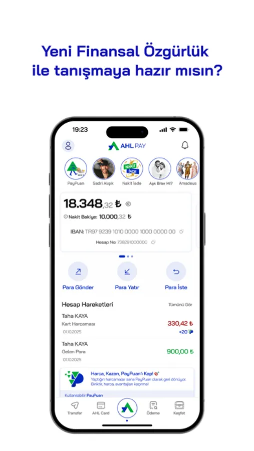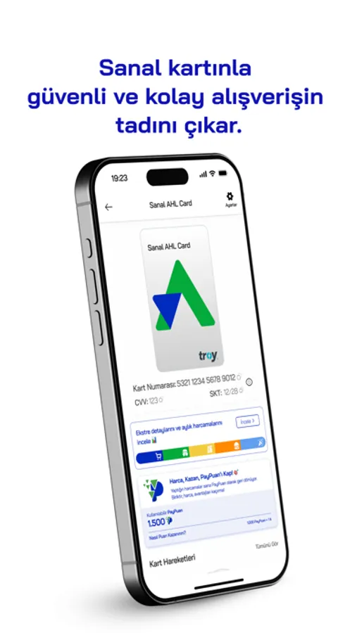 AHL Card ile harcamalarını kolayca takip edip, hesabına yüklediğin tutar kadar güvenle alışveriş yapabilirsin. Kartını yurt içi, yurt dışı ve online alışverişlerde kullanabilir, her harcamanda PayPuan kazanır ve nakit iade fırsatlarından yararlanabilirsin. Temassız ödeme yapabilir, ATM’den para çekip yatırabilir, bakiye yükleyebilirsin. Mastercard güvencesiyle yurt dışında da güvenle kullanılır.