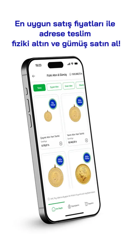 AHL Pay ile fiziki altın ve gümüşe en uygun fiyatlarla sahip olabilir, seçtiğin ürün sigortalı ve ücretsiz olarak adresine teslim edilir. Bebek altını, gram, çeyrek, ata, cumhuriyet veya bilezik gibi seçeneklerden dilediğini alabilir; ödemeni bakiye veya kredi kartınla yapabilirsin. Bilezik alımlarında 3 taksit imkânı da seni bekliyor. Tüm ürünler Ahlatcı Kuyumculuk güvencesiyle gönderilir.