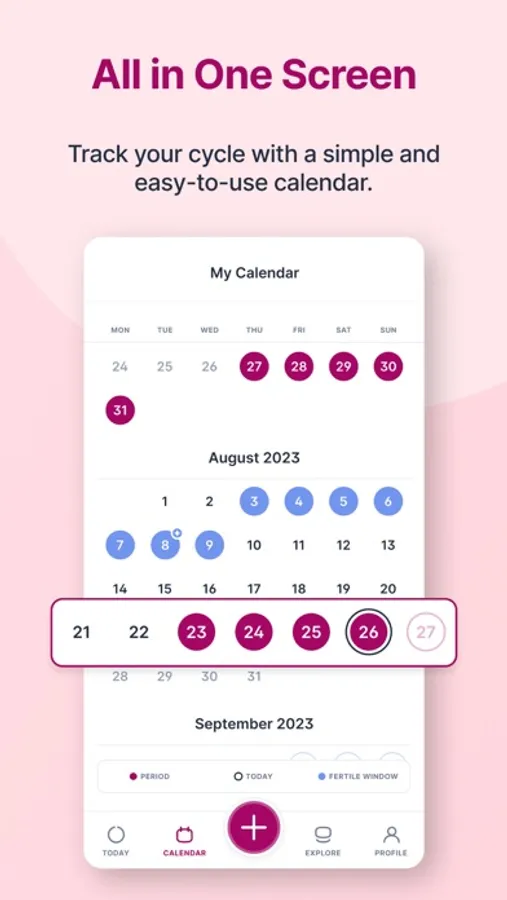 Choose how you’ll use Kompanion Period Tracker according to your needs. You can simply use it as a menstrual calendar and track your periods, or use it for family planning with the help of the ovulation calendar to get pregnant.