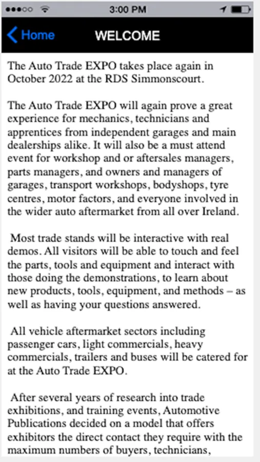 The Auto Trade EXPO App is an app to make your visit to the Auto Trade EXPO as smooth as possible. The app features an A to Z of exhibitors, list of guest speakers and techtalk topics as well as a floorplan of the exhibition centre.